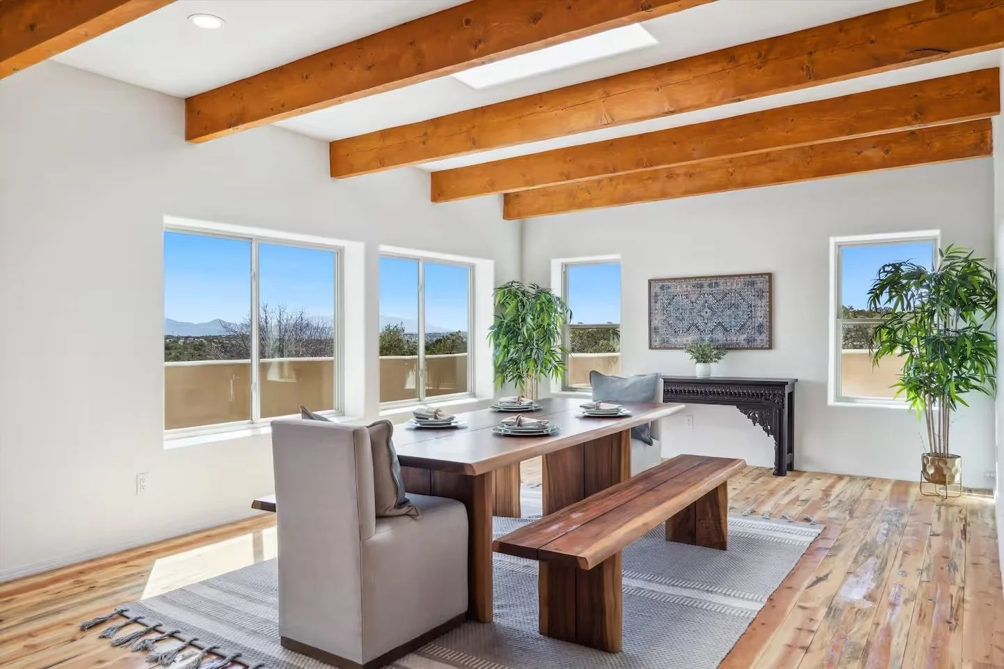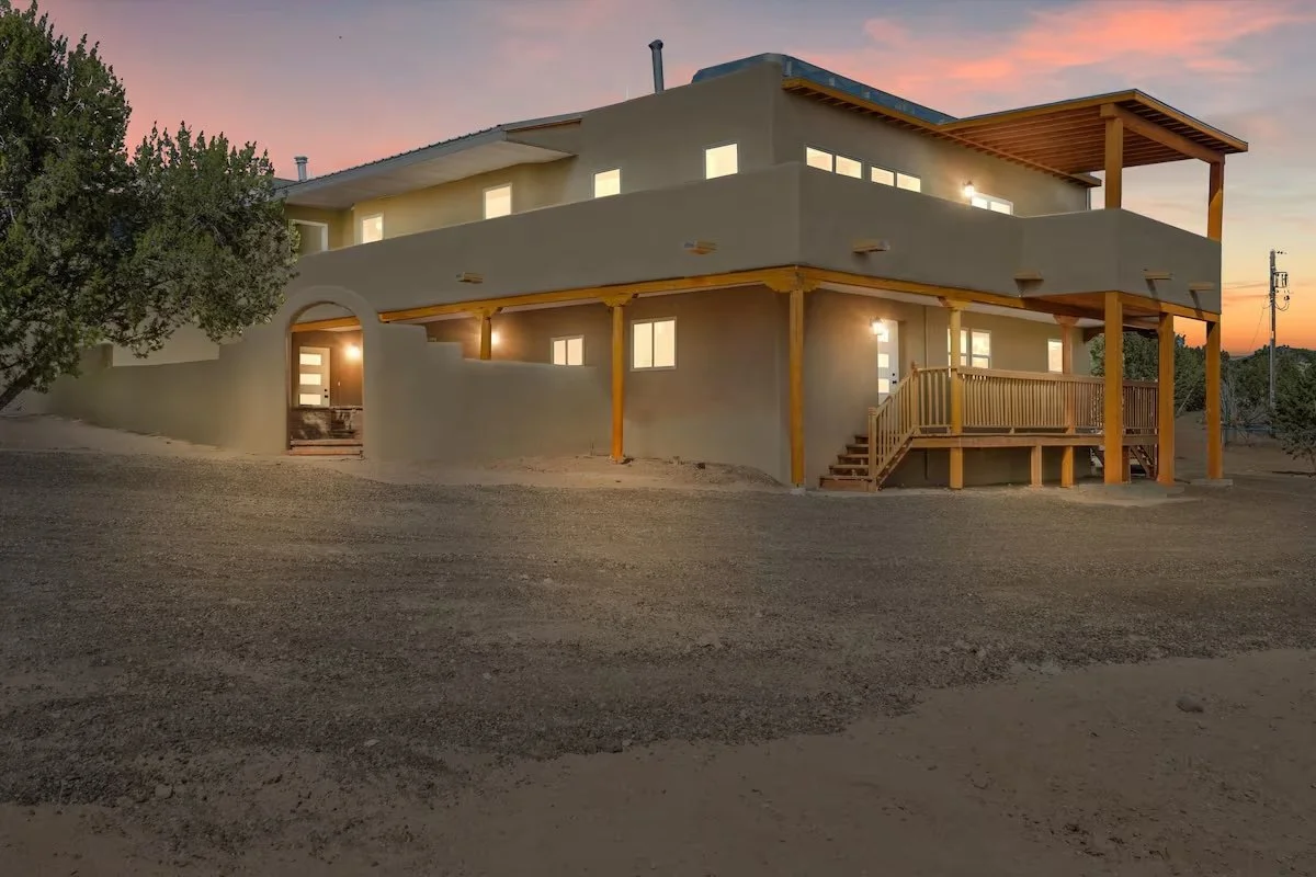 Tucked away on over 5 acres of high desert beauty, this Santa Fe Estate offers 7 bedrooms and 4.5 bathrooms. Surrounded by sweeping views and wide open skies, this remote escape offers unmatched privacy and tranquility.